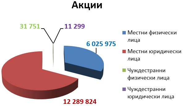 Разпределението на акциите между физическите и юридически лица - местни и чуждестранни е както следва :